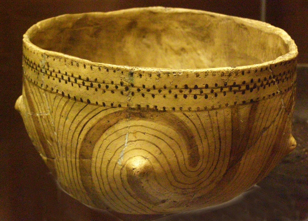 Switzerland: Neolithic villagers made these pots, some of them incised with dotted patterns of flowing milk (see another example below).