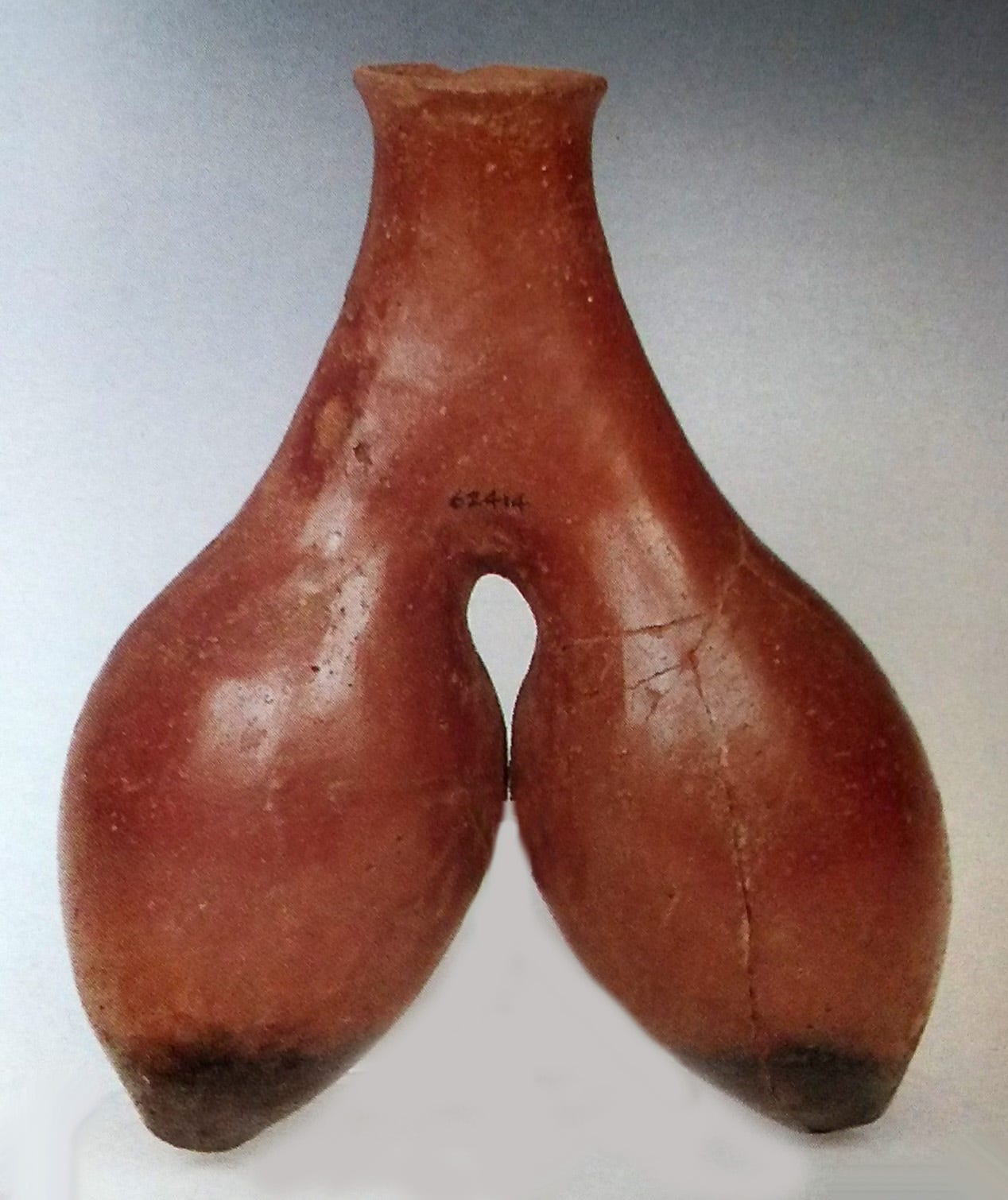 China: From Si Wa, Gansu, circa 3000 bce. One of many breast tripods from late Yangshao period, which were prototypes for the later bronze offering vessels called Li (the elongated legs no longer resemble nipples).