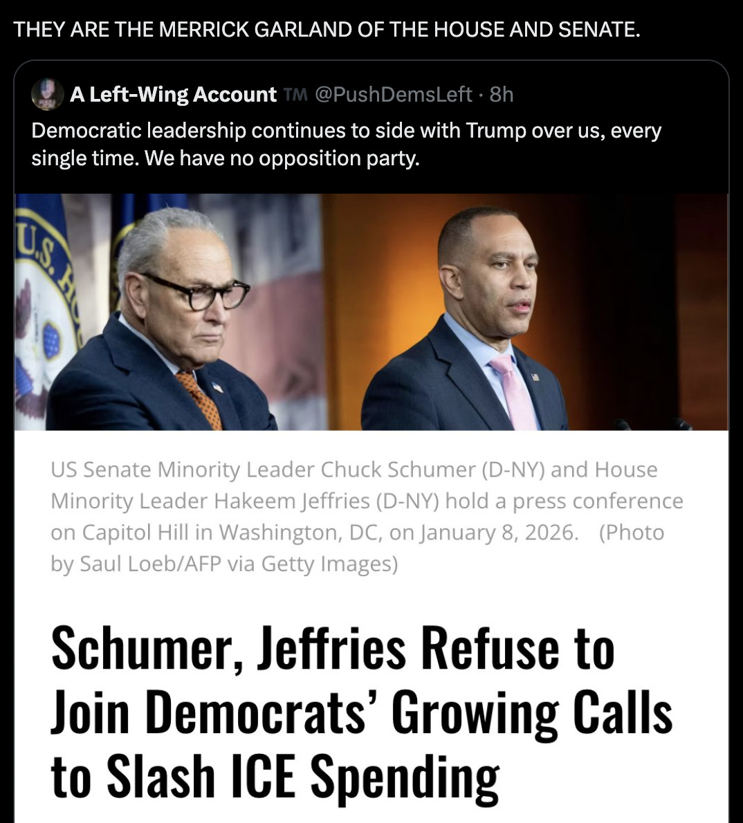 Still more alarming, the Democratic leadership (using that word advisedly) is rolling over for it. Just as Merrick Garland sandbagged the prosecution of Trump for fomenting sedition on Jan 6 (and also funding its main actors).