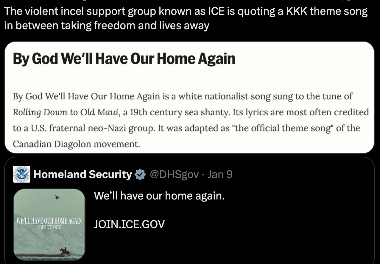 Here we have to look at who the ICE recruits are (beyond the fact that most score poorly on intake exams and often do not meet physical requirements). Their ranks are filled with Proud Boys, Jan 6 insurrectionists, “Replacement” conspiracy theorists, and other varieties of white nationalists: