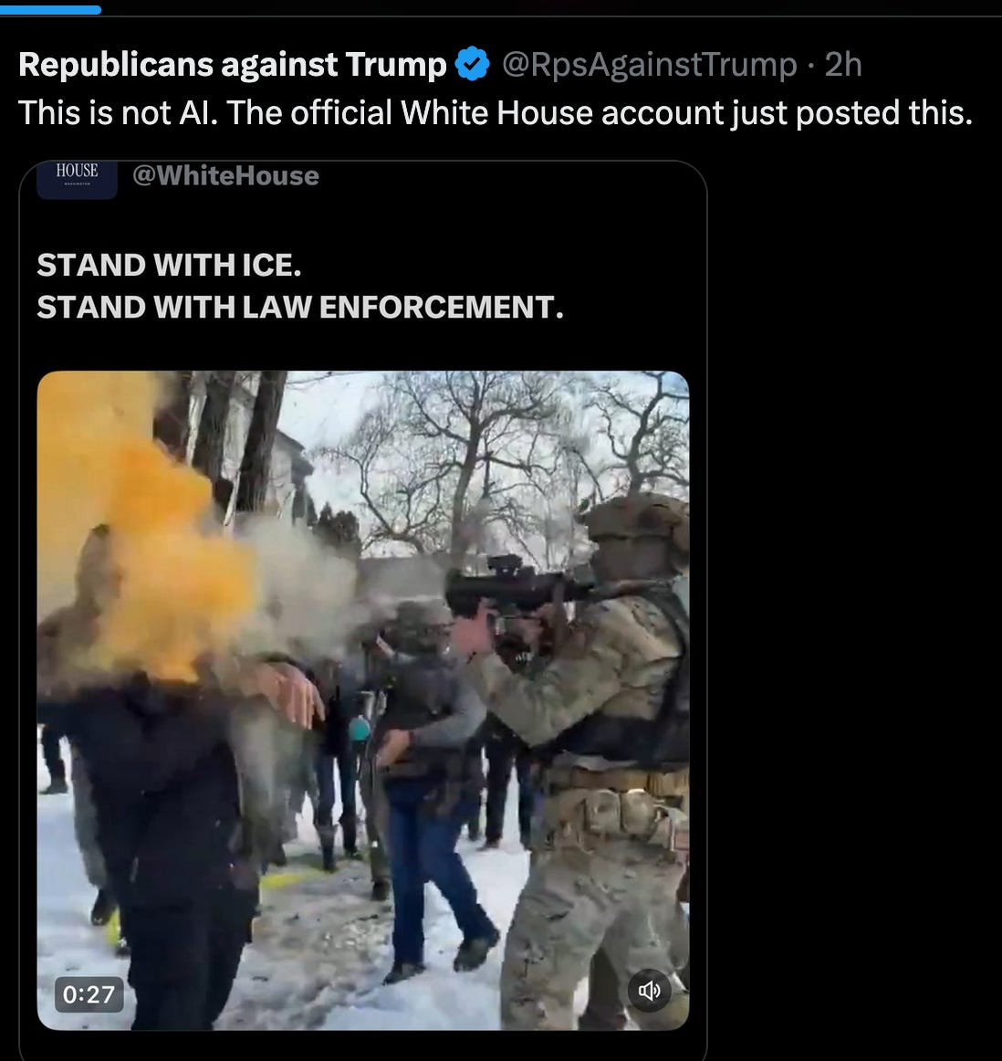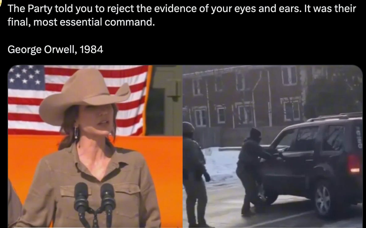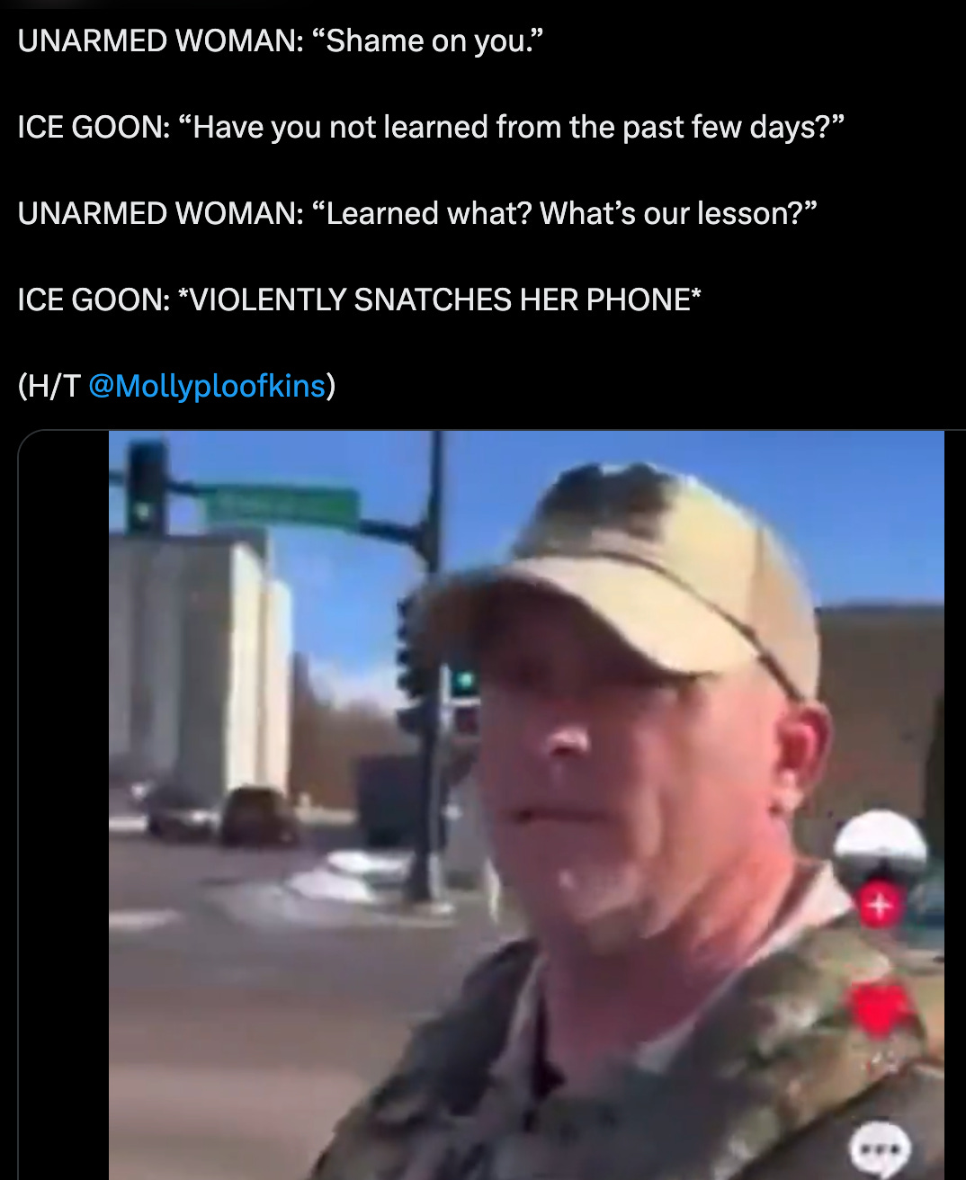The Trump administration responds with full-throated support for ICE, denying the basic facts videotaped and witnessed by multiple people. Noem and Trump lied in calling the mom that ICE shot point-blank in the face “a domestic terrorist,” claiming that she had "weaponize(d) her vehicle" and "attempted to run" over an officer.