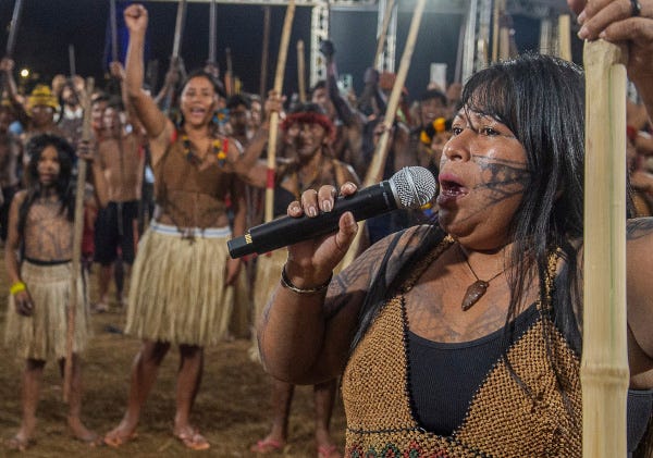 Indigenous women protesting destruction of their lands at last year’s climate summit in Brazil